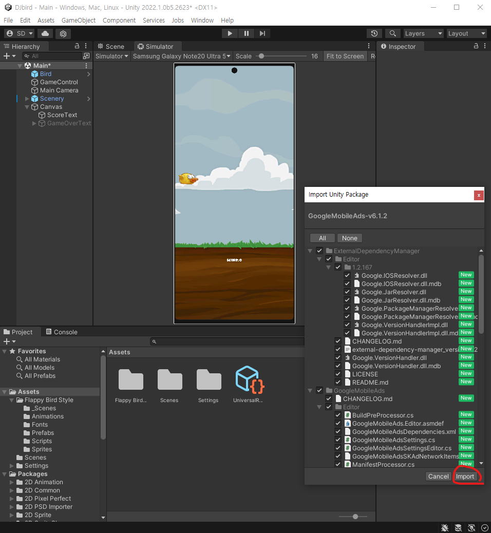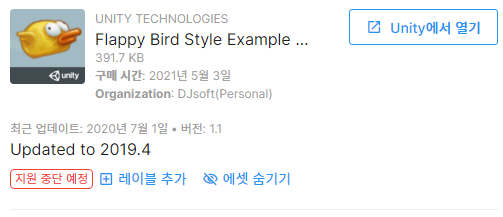 저는 조코딩의 리소스를 사용하지 않고 assetstore에 있는 flappy버드 에셋을 무료 구매해 광고를 붙여 출시해 보도록 하겠습니다.