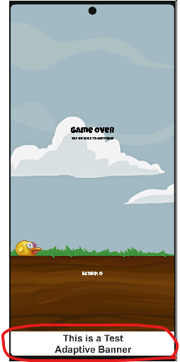다음 코드를 넣고 실행해 보니 광고 Test 가 디스플레이가 잘 됩니다.