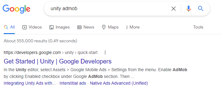 구글에서 unity admob을 검색합니다.