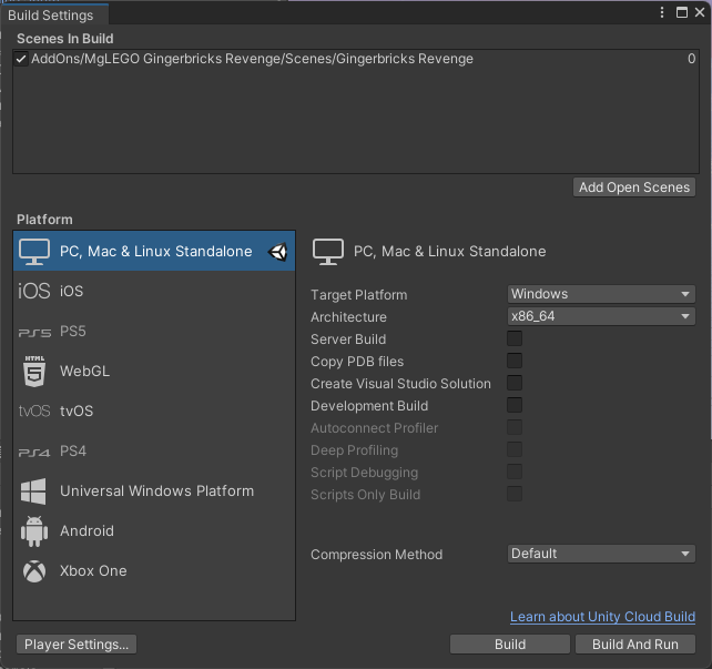 File > Build Settings 메뉴에서 Build를 클릭합니다.