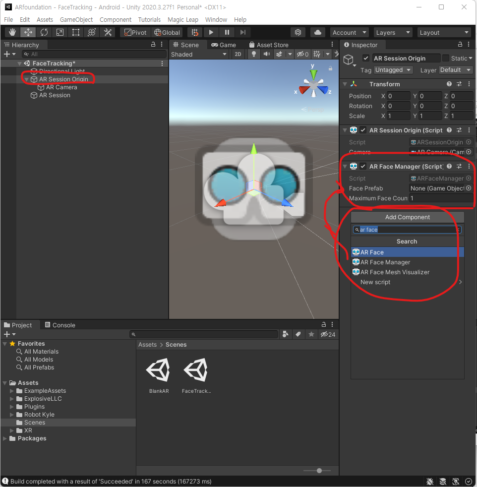 AR Session Origin 에 Add Component로 AR Face Manager를 추가합니다.