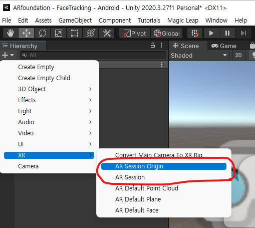 그리고 Main Cameta 삭제 후 AR Session Origin, AR Session 추가