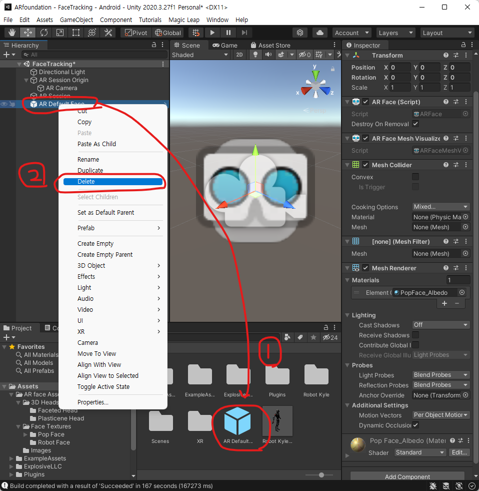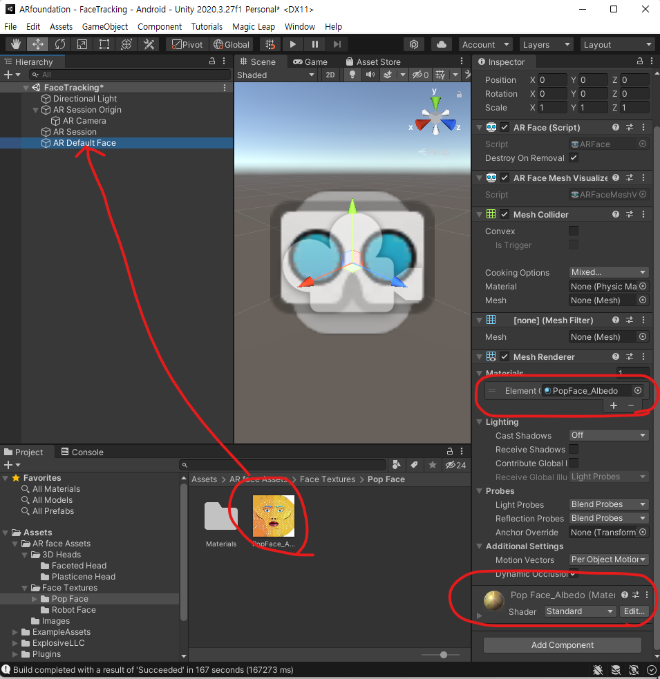 AR Defalut Face 에 Pop Face 텍스쳐를 연결합니다.