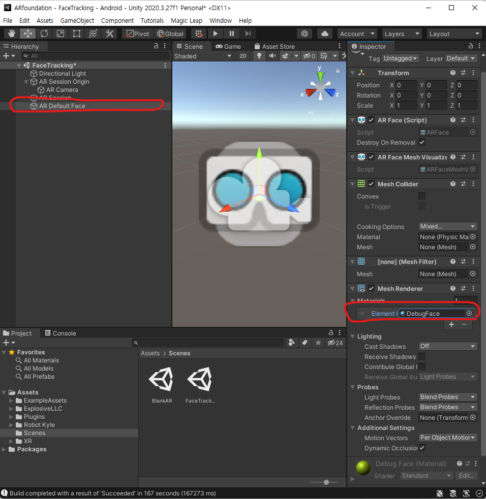 추가하면, Material에 DebugFace가 연결되어 있는데 마스크를 의미하는 것으로 이쁘지가 않습니다.
