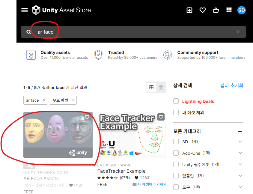 에셋 스토어에서 마스크를 다운받아 적용해 보도록 하겠습니다.
