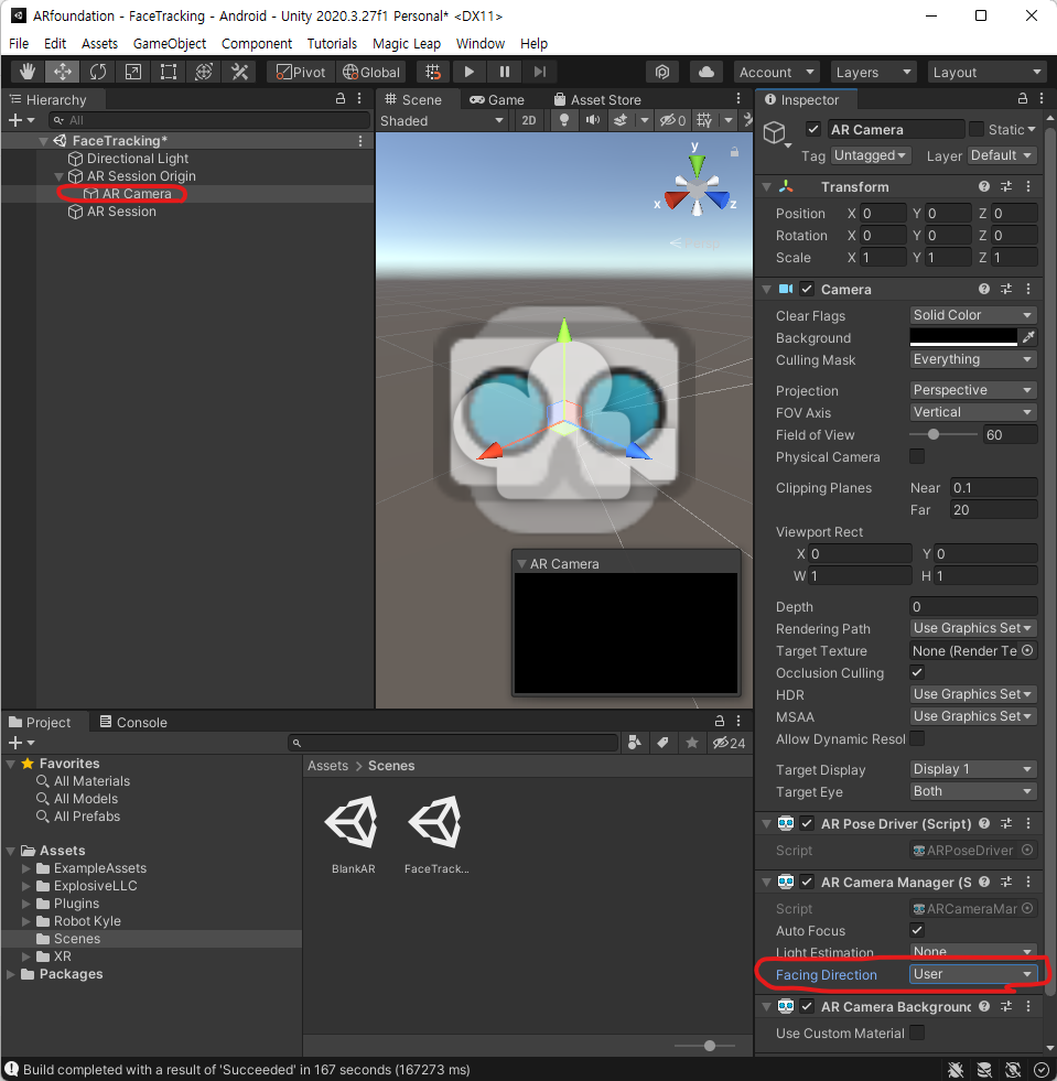 AR Session Origin -> AR Camera의 Facing Direction 을 World에서 User로 변경