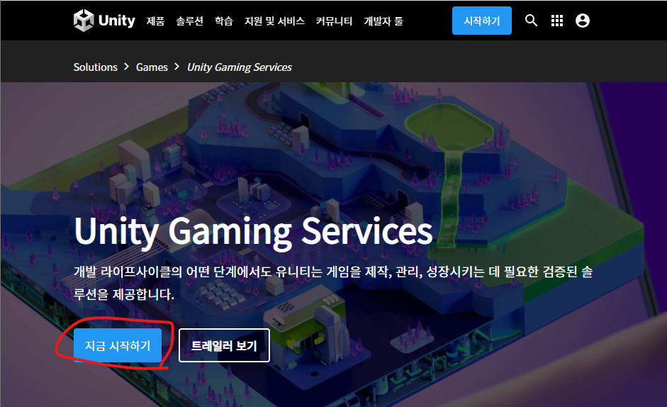 홈페이지에 바로 Unity Gaming Services 만나보기 링크가 있었습니다.