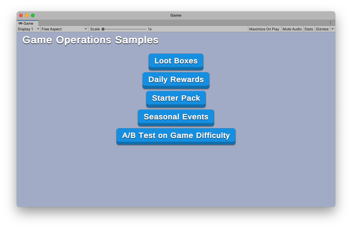 인증, 경제, 원격 구성, 클라우드 코드 및 클라우드 저장과 같은 다양한 Unity 게임 서비스를 구현하는 샘플 탐색을 시작 하려면 Game Operations 샘플 리포지토리 를 참조 하세요.